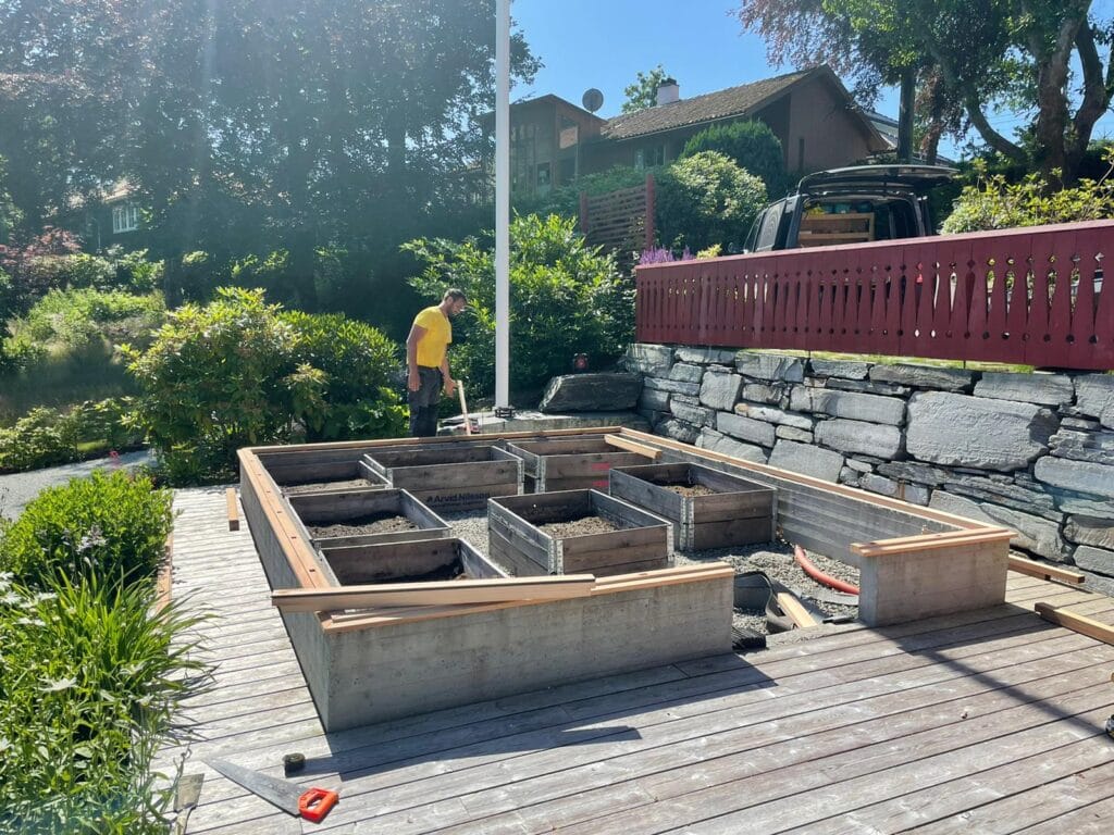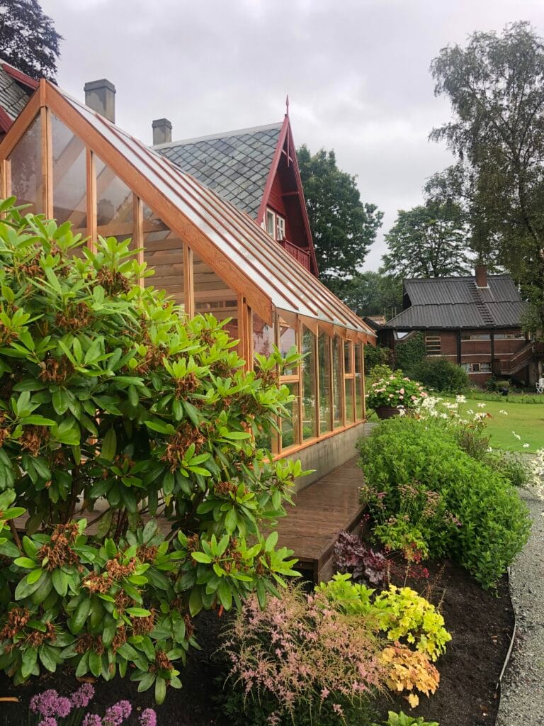 Her fikk vi muligheten til å oppføre ett drivhus laget av sedertre på eksisterende mur laget av kunden selv.